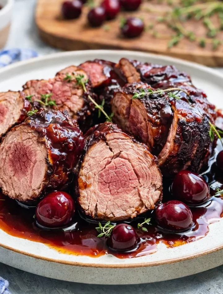 Slice and Serve: Slice the pork tenderloin into medallions and serve it topped with the glossy cherry sauce from the skillet. Enjoy the delightful balance of flavors!
