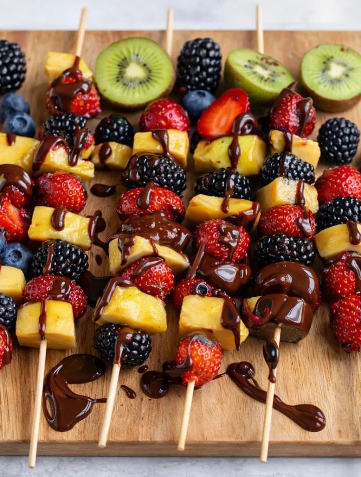 Set the Kabobs: Place your fruit kabobs on a parchment-lined baking sheet to cool, allowing the chocolate to set without sticking.