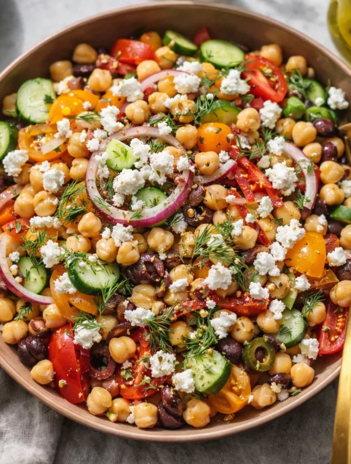 Whether you’re cooking for a casual family lunch, a backyard barbecue, or a romantic dinner for two, this Greek Chickpea Salad with Feta and Olives is sure to impress your guests and delight your taste buds. So grab your ingredients and prepare to create a colorful, nutritious meal that’s easy to prepare and even easier to enjoy.