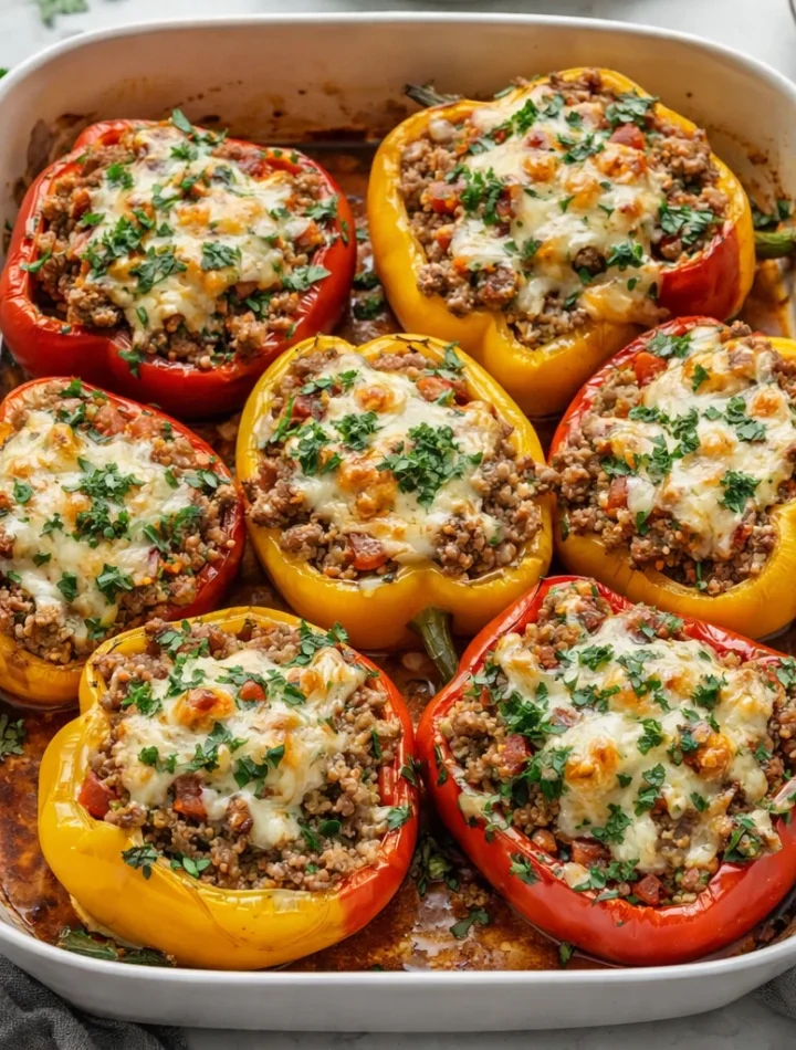 Welcome to a culinary adventure that combines delicious flavors and nutritional benefits—Ground Beef Stuffed Peppers with Quinoa and Cheese! This recipe stands out among various ground beef recipes, offering simplicity and comfort wrapped in colorful bell peppers. Imagine juicy ground beef mixed with wholesome quinoa, blended with your favorite spices and cheese, all encased in vibrant peppers. This dish is not just easy to make but also incredibly satisfying, making it an excellent choice for busy parents, students, food enthusiasts, newlyweds, and anyone seeking a healthy yet comforting meal.