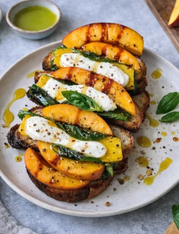 Peach Caprese Sandwich Layered with Basil and Balsamic Reduction: A Tropical Delight Introduction to Peach Caprese Sandwich Layered with Basil …