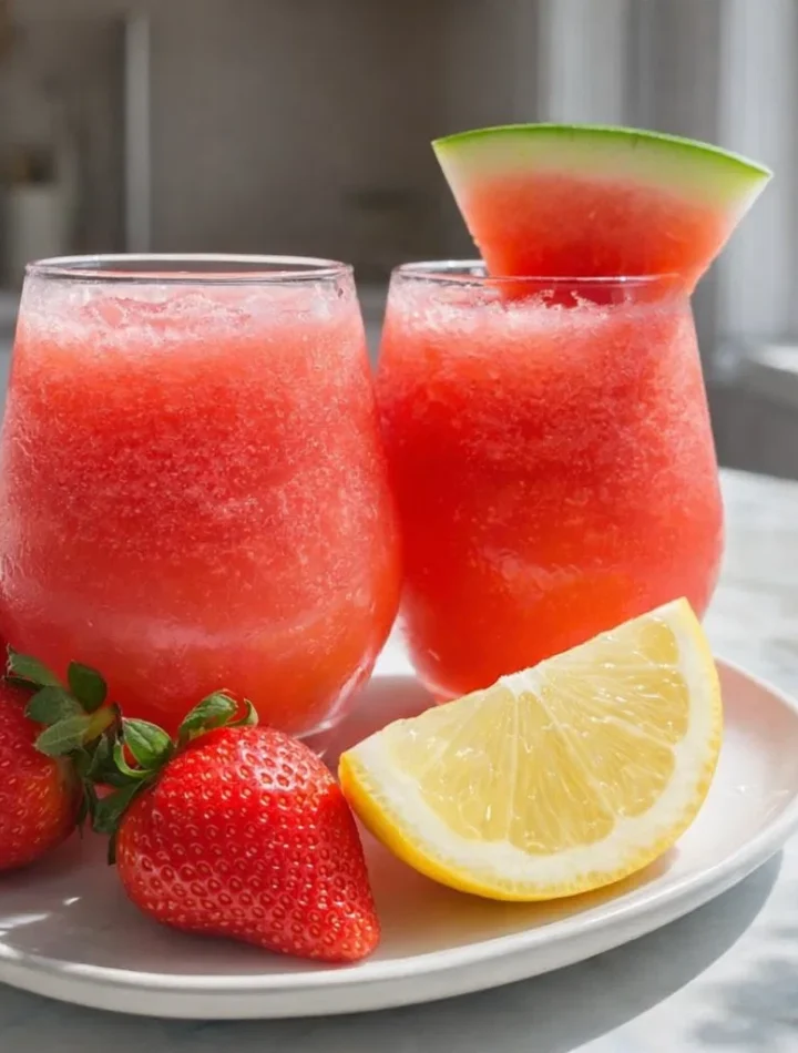 Blend Strawberries and Watermelon: In a blender, combine the sliced strawberries and watermelon cubes. Blend until smooth to create a vibrant puree.