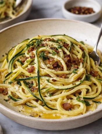 Adaptability: This recipe is easily customizable to suit your dietary needs. Whether you’re vegan, gluten-free, or simply wanting to eat more plant-based meals, zucchini noodle carbonara light can be adjusted. You can substitute the cream base with different plant-based options or use your favorite non-dairy cheese for extra creaminess.